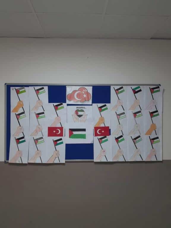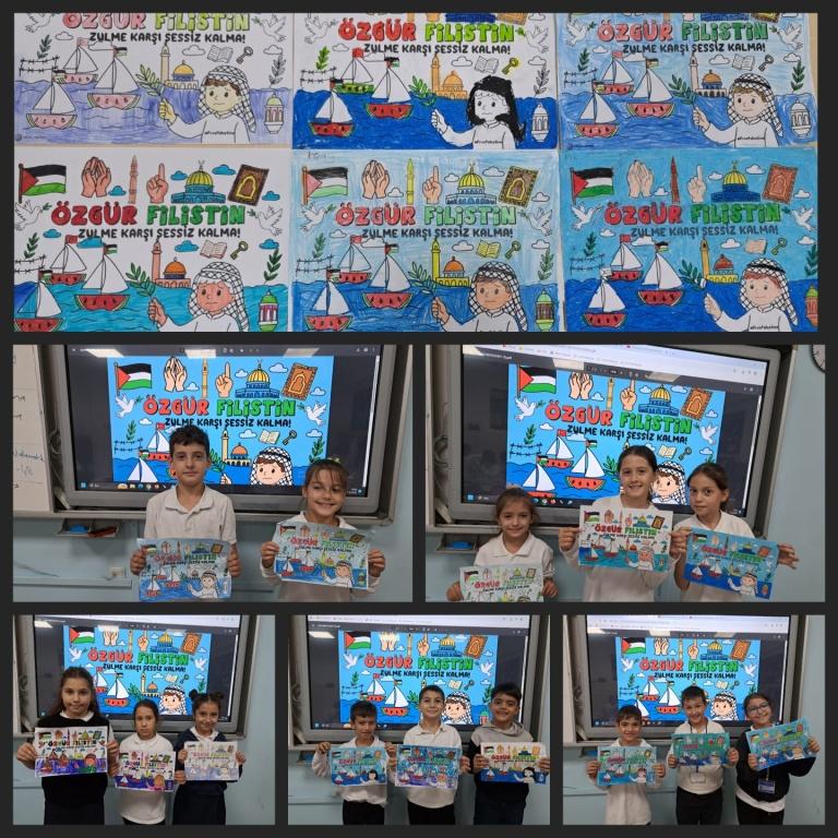 Okulumuzda Filistin'deki insan hakları ihlallerinin ve soykırımın sona erdirilmesine yönelik güçlü desteğimizi göstermek için Filistin Farkındalık Etkinlikleri yapıldı. Bu vesileyle, Ulu Önder Mustafa Kemal Atatürk'ün söylemiş olduğu "Yurtta barış dünyada barış" sözünün Filistin'de ve dünyanın savaş halinde olan diğer ülkelerinde en kısa sürede hayata geçmesini diliyoruz.